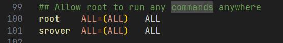 sed -i "/root\tA/a {用户名}\tALL=(ALL)\tALL" /etc/sudoers