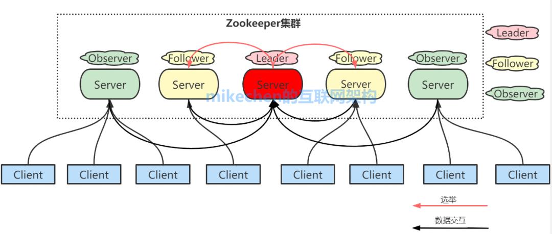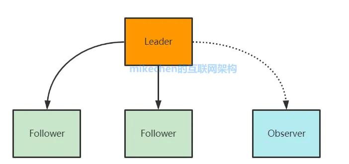 Observer:只能处理读请求,不能参与选举。