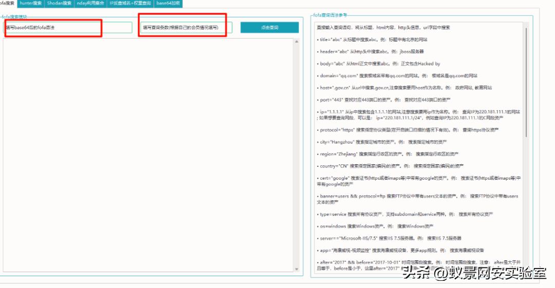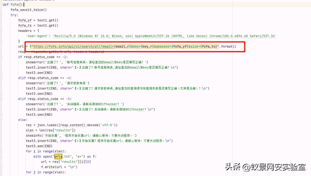 代码很长,说一下我们需要注意的点,首先就是配置,对于的 fofa 配置如下