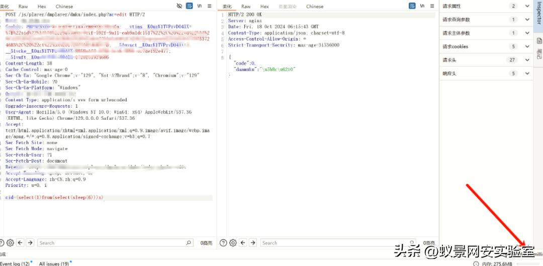确实是 sleep 了,说明漏洞存在,我们看到代码